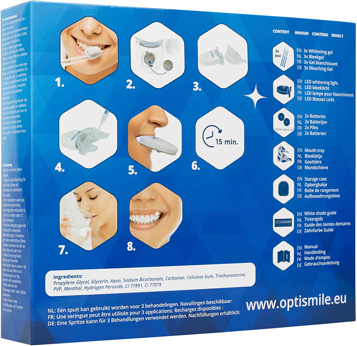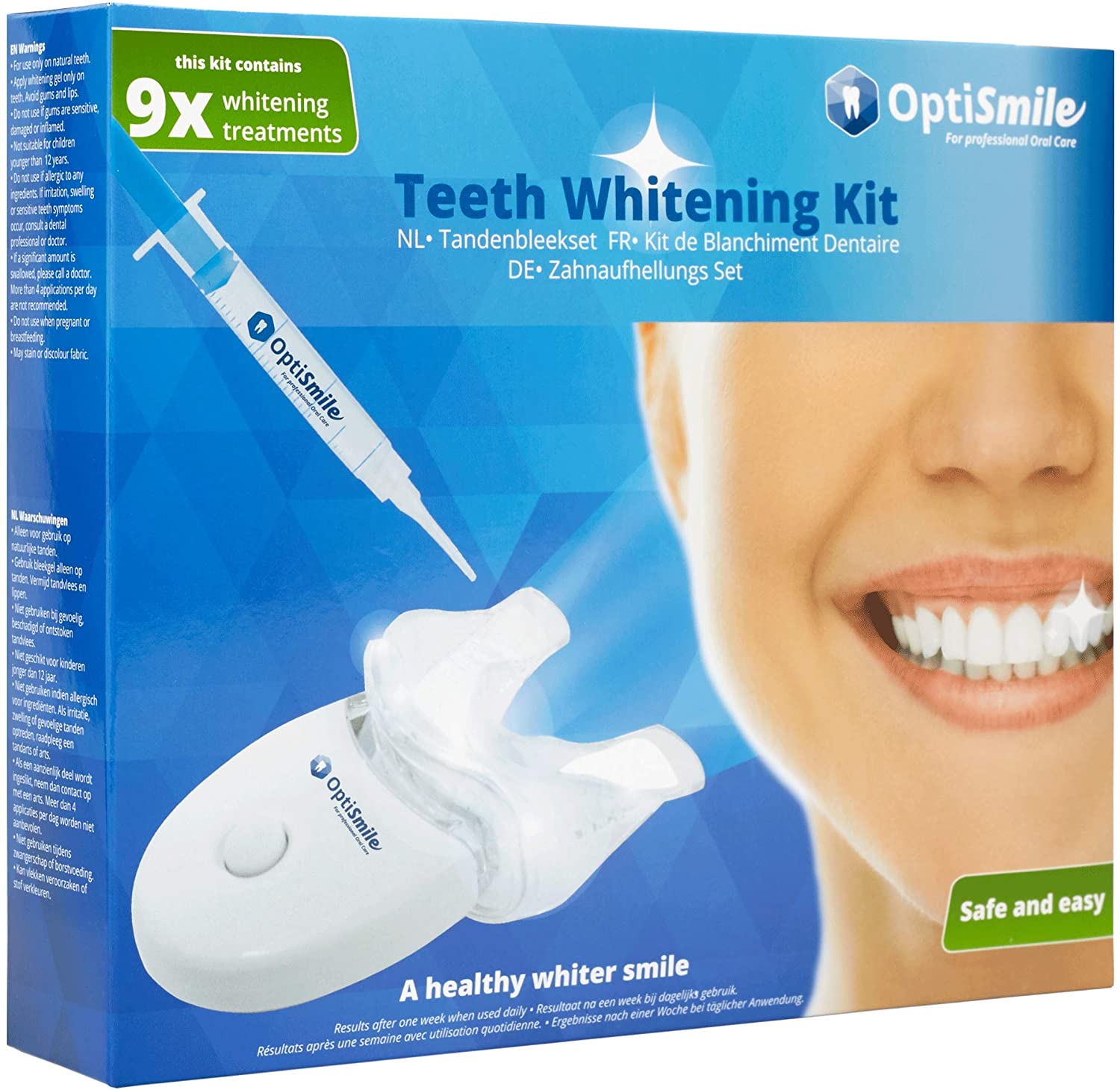 OptiSmile Teeth Whitening Kit - 9 traitements - Kit de plomb pour les dents blanches - 3 teeth Whitening, 1 kit de gel Dental Trays et lumière laser