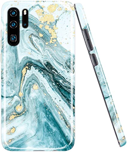 Jaholan Coque Huawei P30 Pro Gold Glitter Sparkle Mint Marbre Design Coque TPU Gel Housse Etui Protection Ultra Fine Mince Léger Case Souple Coque pour Huawei P30 Pro
