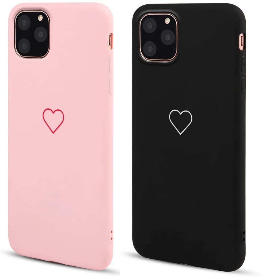 LAPOPNUT Coque iPhone 11 Silicone en Gel TPU Souple Slim Mignon Amour-Coeur Forme Mat Antichoc Bumper Housse Étui de Protection pour Apple iPhone 11 Rose&Noir
