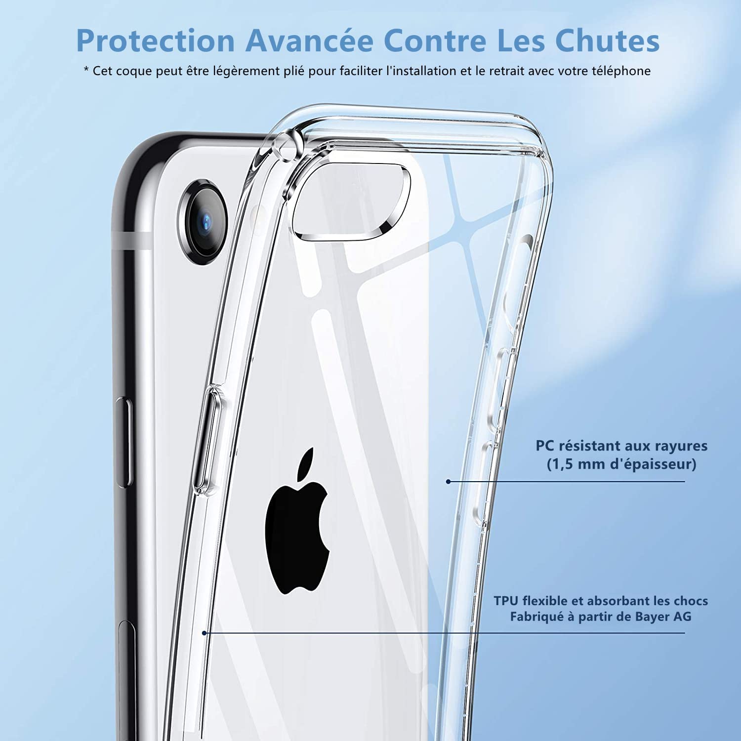• 【Protection contre les Chutes】- Syncwire Housse compatible avec iPhone 7 / 8 / SE 2020 associe des matériaux flexibles aux propriétés d'absorption des chocs fabriqués par Bayer AG et un polycarbonate solide (1,5 mm d'épaisseur) à l'arrière. La couche d'absorption des chocs est fabriquée dans un matériau ultra-efficace qui absorbe et dissipe la force à l'impact, en l'empêchant de se transmettre à votre iPhone.