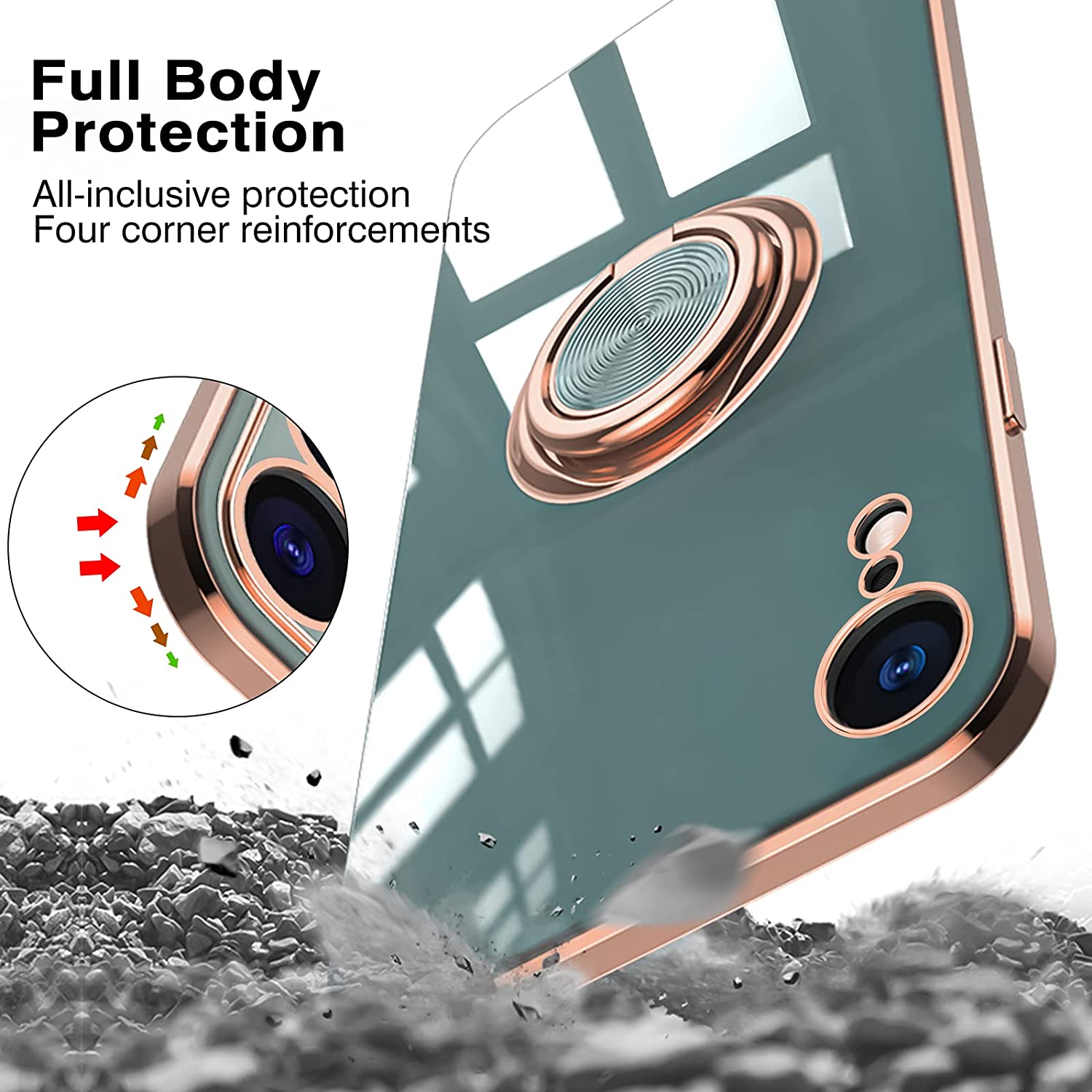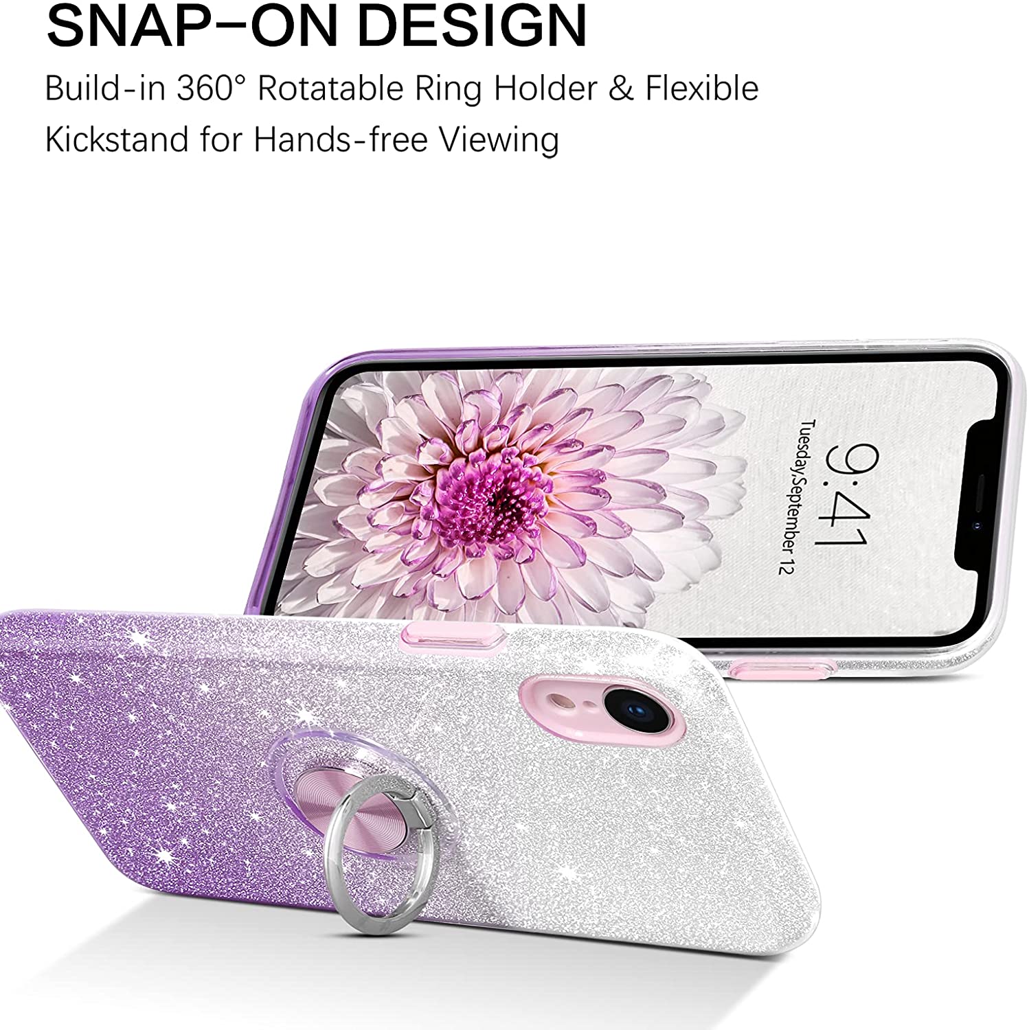 • 【Support de bague de doigt】 Le support de l'étui iPhone XR peut être tourné à 360 °, il favorise un meilleur contrôle à une main. Il peut également être un support pour une utilisation horizontale lors de la lecture de films.