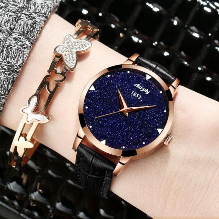 SHARPHY Montre Femme 2020 de marque Ciel étoilé étanche bracelet Cuir Noir