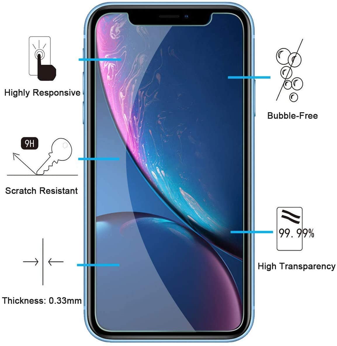 Verre Trempé Compatible avec iPhone 11 et iPhone XR (6.1), Film Protection écran sans Bulles d'air Ultra Résistant (0,33mm HD Ultra Transparent) Dureté 9H Glass"